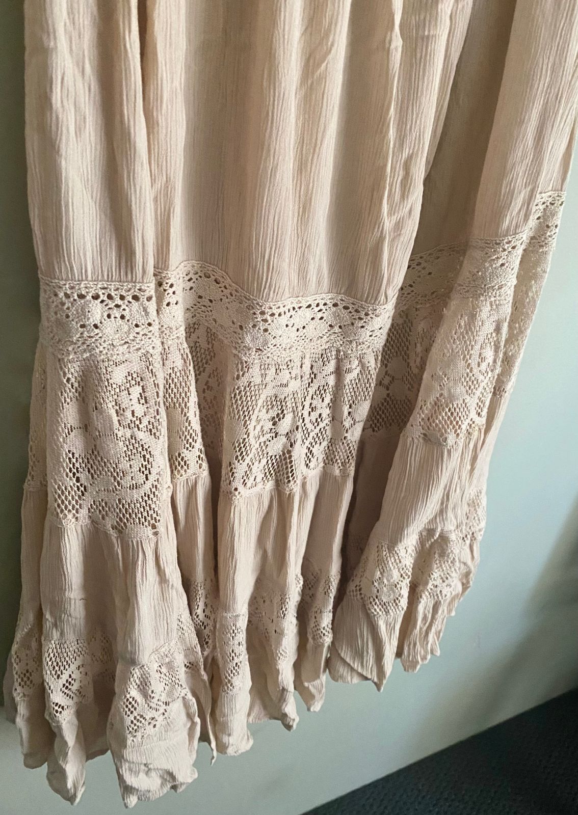 Free-spirited and feminine, our Alexander Skirt is a flowing maxi design crafted in a soft natural cream hue. Intricate cotton lace panel details and a gently tiered hemline create beautiful texture and movement. An elastic waistband with a tassel-tied drawstring offers a comfortable, adjustable fit. Effortlessly romantic and endlessly versatile, this skirt embodies relaxed bohemian elegance in its purest form.